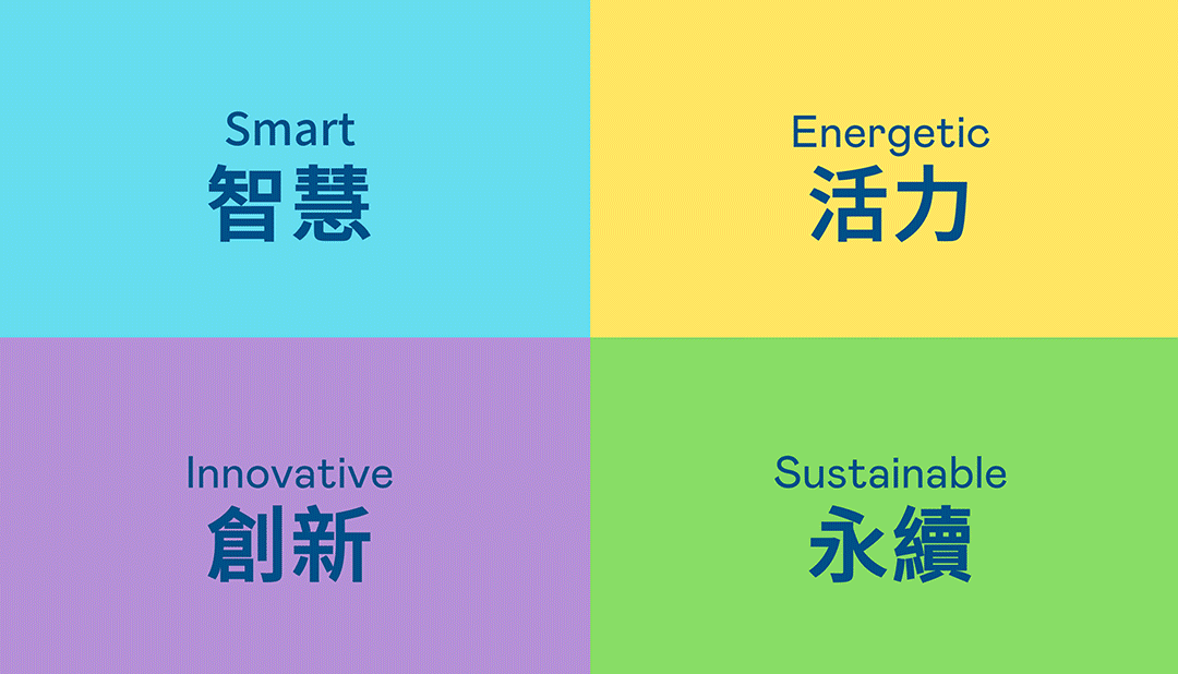 Based on dependable and staid AUO blue, we inject more brand colors—Smart Blue, Energetic Yellow, Innovative Purple, and Sustainable Green—along with diverse and dynamic geometric shapes. This visual identity conveys AUO’s transformation visually and echoes our spirit of pursuing boundless possibilities. The diversity and the movement of the geometric shapes demonstrate the possibilities created by AUO’s diverse technologies and application fields. |